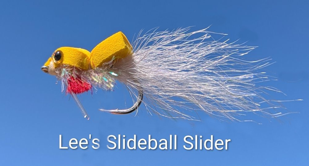 Slideball Slider Series gray & white Slideball Slider Check out my blog for the story on big lake trout, taken with this fly: http://leehaskin.blogspot.com/2018/06/alaska-lakers.html Price: $9.00 Hook: Mustad 34007 1/0-3/0; Gamakatsu B10S 2/0 LMB: Mustad 8089 #4, #2 (weedless) Option: Weedless